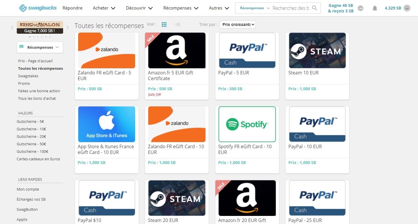 - Des cartes cadeaux : Steam, Zalando, Spotify, Amazon & iTunes.