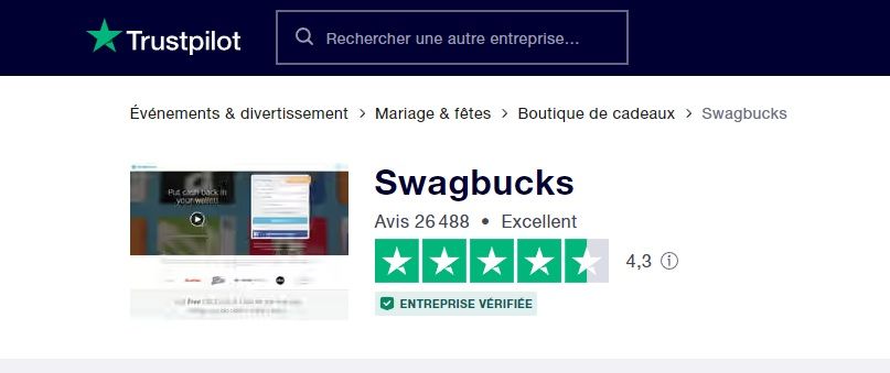 Swagbucks reçoit beaucoup d’avis positifs de la part de ses utilisateurs. On peut notamment lire de nombreux témoignages dans les commentaires sous certains articles qui concernent ce site. Et sa note sur Trustpilot nous le confirme également :
